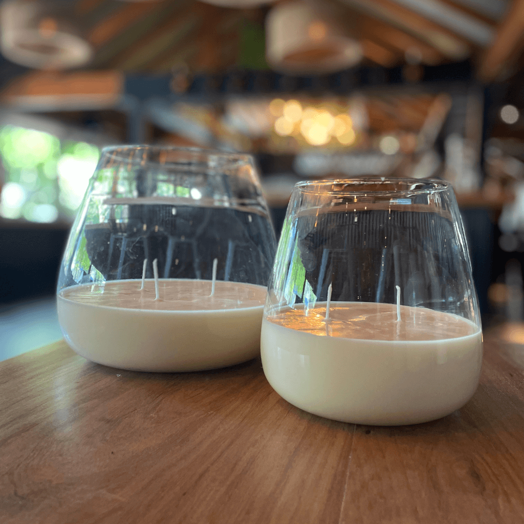 Vela de cera de soja en vaso de vidrio soplado, una combinación perfecta de diseño y aroma.
